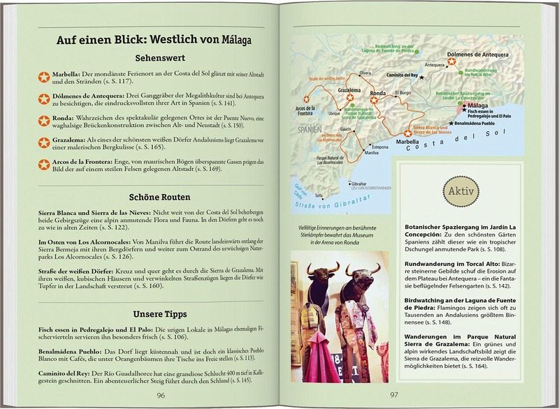 Das Beste jeder Region auf einen Blick: Doppelseite mit sehenswerten Highlights, den schönsten Routen und ausgewählten Tipps der Autoren Alle Orte mit kommentierten Adressen für Unterkünfte, Restaurants, Einkaufsmöglichkeiten und mehr Andalusien aktiv erleben mit Empfehlungen für faszinierende Naturerlebnisse und Wanderungen mit Detailkarten Ausführliche Landeskunde: Alles über Wirtschaft und Alltag, Natur und Umwelt, Kunst und Kultur Beste Orientierung dank detaillierter Citypläne und herausnehmbarer Reisekarte