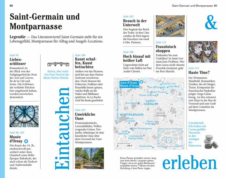 Seit einem verheerenden Brand in der Karwoche 2019 können Besucher nicht mehr den umwerfenden Blick über Paris von den Türmen der Kathedrale Notre-Dame genießen. Also kann es gleich mit 'bodenständigen' Entdeckungstouren losgehen: nämlich durch die Viertel dieser 'Stadt der 1000 Dörfer', wie die Pariser ihre Seine-Metropole gerne nennen. Autorin Gabriele Kalmbach führt Sie kreuz und quer durch die Stadt, von Montmartre im Norden bis Montparnasse im Süden, zu prächtigen Boulevards und eleganten Avenuen, in grüne Parks und zu historischen Passagen. Lassen Sie sich im Literatenviertel Saint-Germain inspirieren, vom jugendlichen Quartier Latin mitreißen, erleben Sie den Alltag in SoPi, South of Pigalle. Oder entdecken Sie Street-Art bei einer Tour durch Belleville.