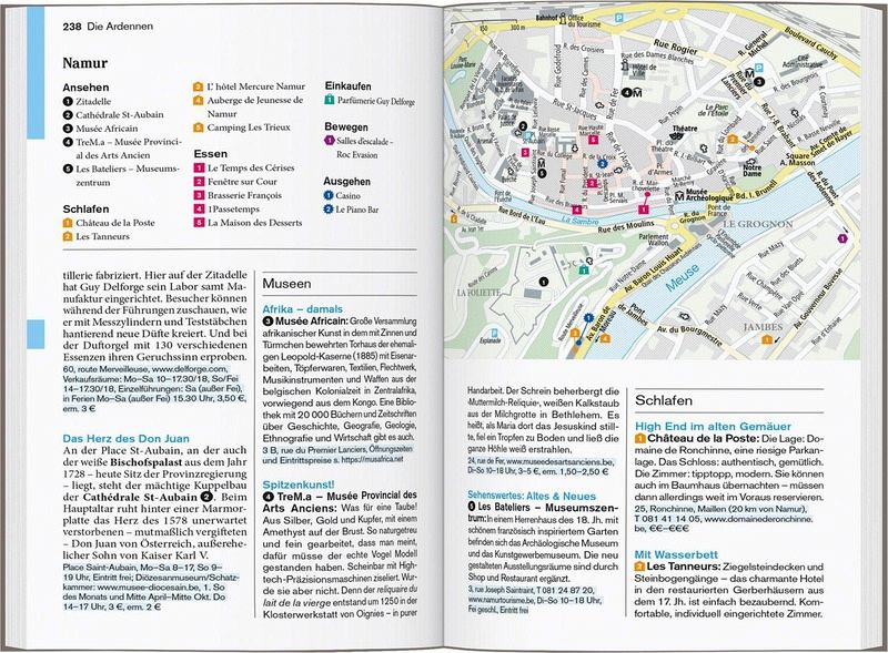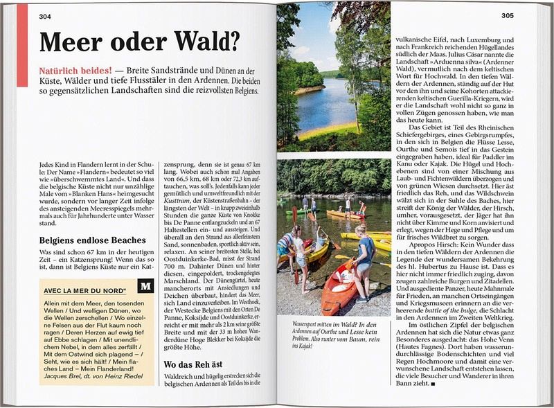 Persönlich und echt: Wir legen Wert auf ehrlicheErlebnisse, Nähe und Gegenwart Übersichtliche Gliederung in einzelne Regionen mit ihren Orten und Landschaften Lustvolle Eintauchen-und-erleben-Seiten vor jedem Kapitel Die Touren: Einfach losziehen, neue Wege gehen. Aktiv in Natur und Kultur eintauchen Die Lieblingsorte: gut für überraschende Entdeckungen Die Adressen: radikal subjektive Auswahl, mal stylish, mal ökologisch, immer individuell und persönlich Das Magazin: ein abwechslungsreiches Reisefeuilleton. Es packt auch kritische und kontroverse Themen an ... Die Karten: 7 Citypläne, 16 Tourenkarten, Übersichtskarte mit den Highlights in Belgien, Schnellüberblick zu jeder Region plus eine große Reisekarte