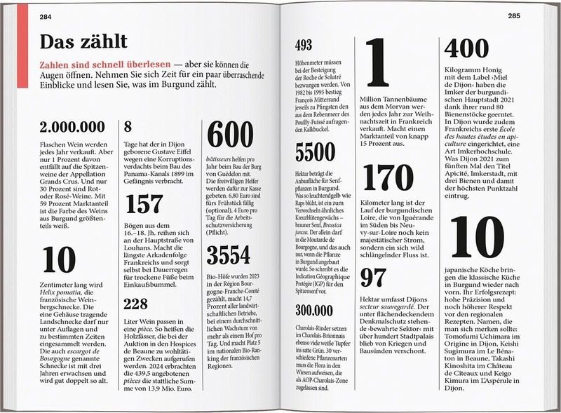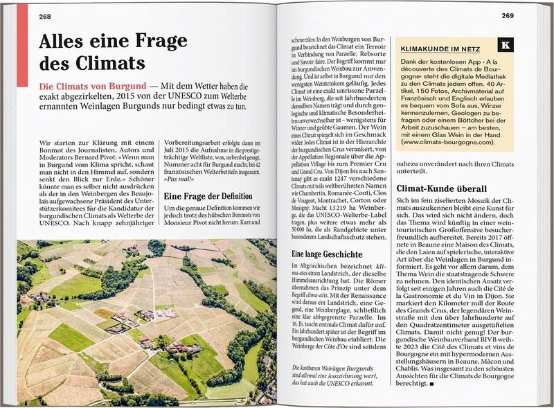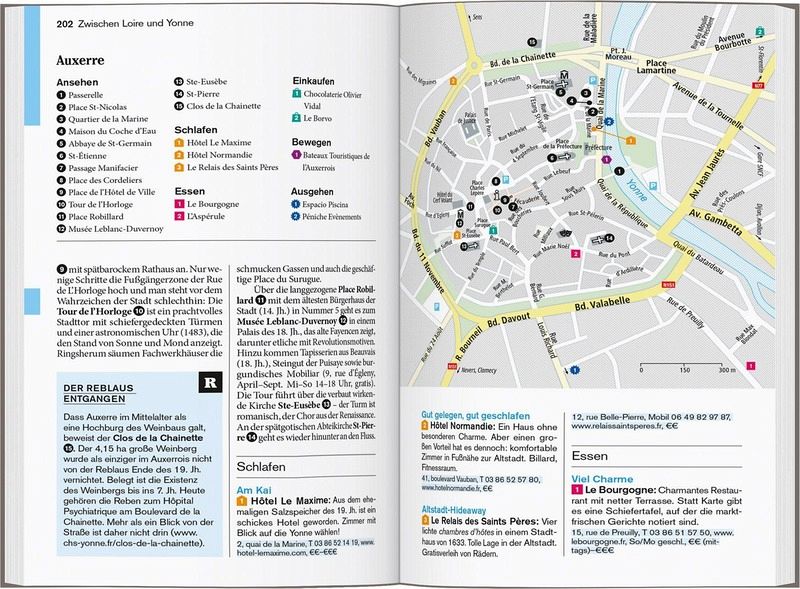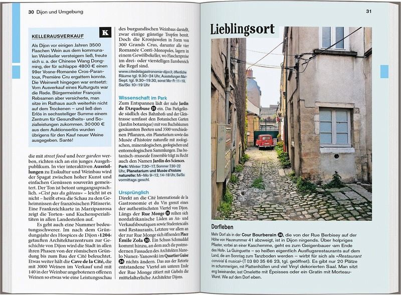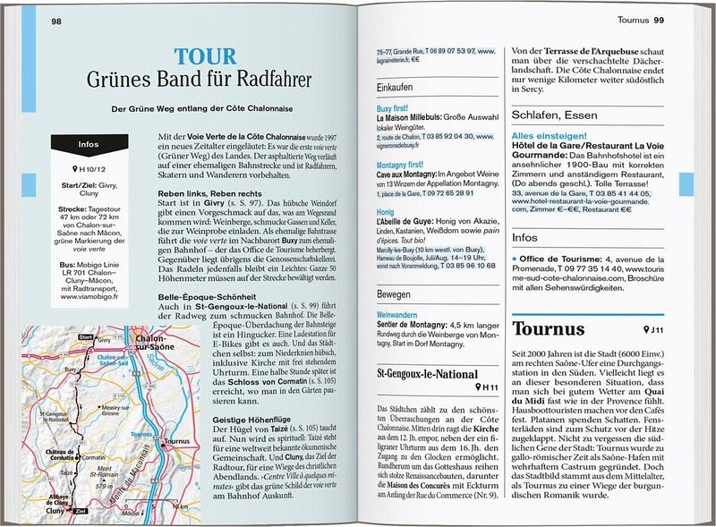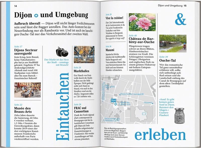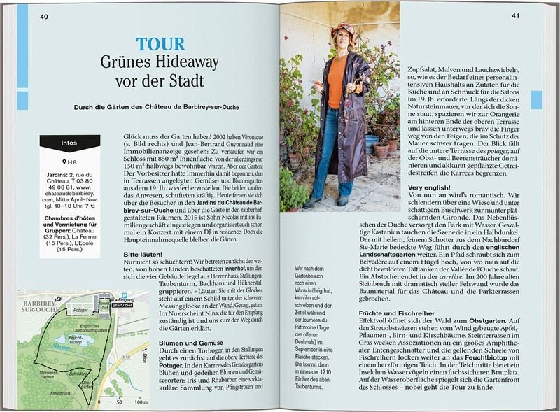 Persönlich und echt: Wir legen Wert auf ehrliche Erlebnisse, Nähe und Gegenwart Übersichtliche Gliederung in einzelne Regionen mit ihren Orten und Landschaften Lustvolle Eintauchen-und-erleben-Seiten vor jedem Kapitel Die Touren: Einfach losziehen, neue Wege gehen. Aktiv in Natur und Kultur eintauchen Die Lieblingsorte: gut für überraschende Entdeckungen Die Adressen: radikal subjektive Auswahl, mal stylish, mal ökologisch, immer individuell und persönlich Das Magazin: ein abwechslungsreiches Reisefeuilleton. Es packt auch kritische und kontroverse Themen an ... Die Karten: 5 Citypläne, 17 Tourenkarten, Übersichtskarte mit den Highlights von Burgund, Schnellüberblick zu jeder Region plus eine große Reisekarte