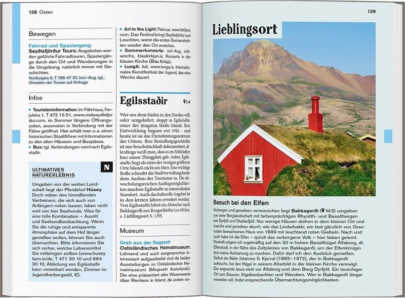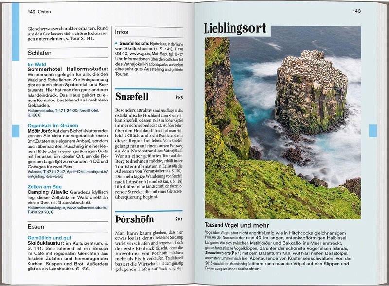 Persönlich und echt: Wir legen Wert auf ehrliche Erlebnisse, Nähe und Gegenwart Übersichtliche Gliederung in einzelne Regionen mit ihren Orten und Landschaften Lustvolle Eintauchen-und-erleben-Seiten vor jedem Kapitel Die Touren: Einfach losziehen, neue Wege gehen. Aktiv in Natur und Kultur eintauchen Die Lieblingsorte: gut für überraschende Entdeckungen Die Adressen: radikal subjektive Auswahl, mal stylish, mal ökologisch, immer individuell und persönlich Das Magazin: ein abwechslungsreiches Reisefeuilleton. Es packt auch kritische und kontroverse Themen an ... Die Karten: Cityplan Reykjavík, 22 Tourenkarten, Übersichtskarte mit den Highlights, Schnellüberblick zu jeder Region plus eine separate Reisekarte