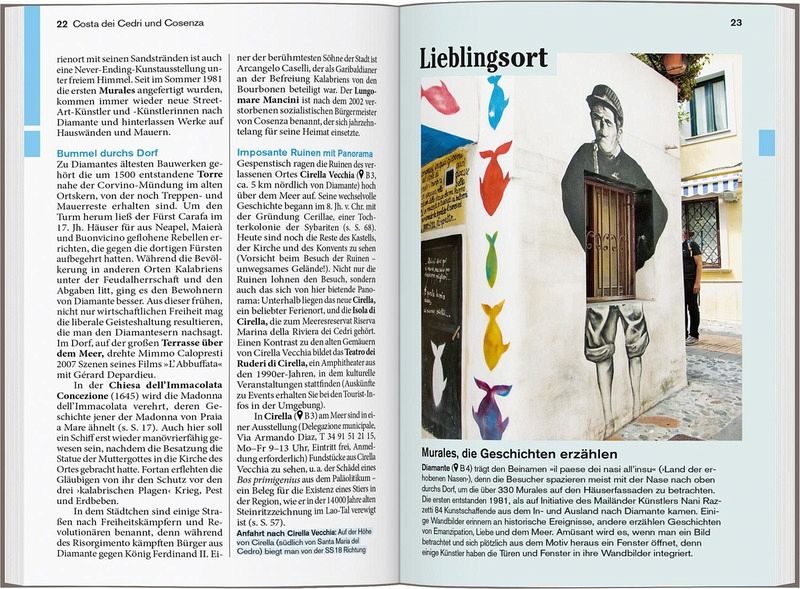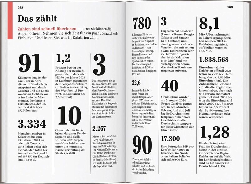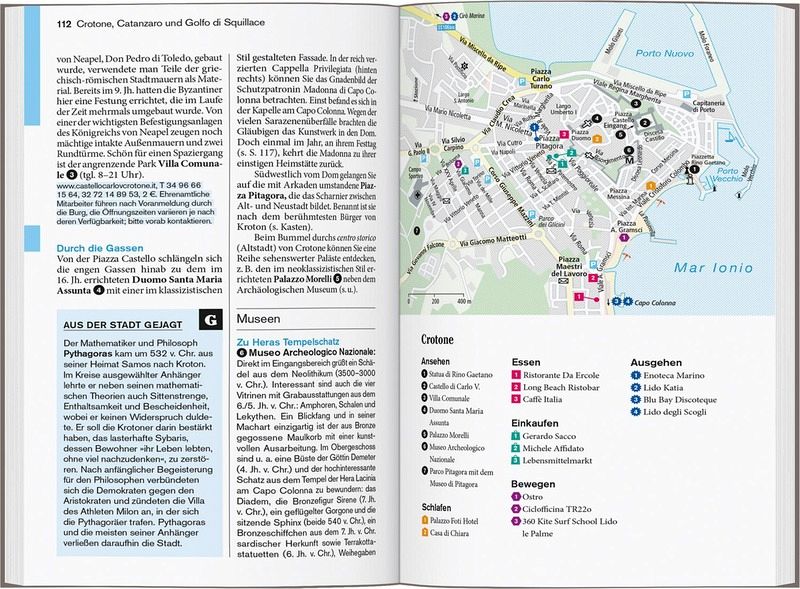 Persönlich und echt: Wir legen Wert auf ehrliche Erlebnisse, Nähe und Gegenwart Übersichtliche Gliederung in einzelne Regionen mit ihren Orten und Landschaften Lustvolle Eintauchen-und-erleben-Seiten vor jedem Kapitel Die Touren: Einfach losziehen, neue Wege gehen. Aktiv in Natur und Kultur eintauchen Die Lieblingsorte: gut für überraschende Entdeckungen Die Adressen: radikal subjektive Auswahl, mal stylish, mal ökologisch, immer individuell und persönlich Das Magazin: ein abwechslungsreiches Reisefeuilleton. Es packt auch kritische und kontroverse Themen an ... Die Karten: 7 Citypläne, 18 Tourenkarten, Übersichtskarte mit den Highlights in Kalabrien, Schnellüberblick zu jeder Region plus eine große Reisekarte