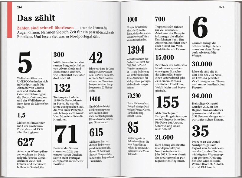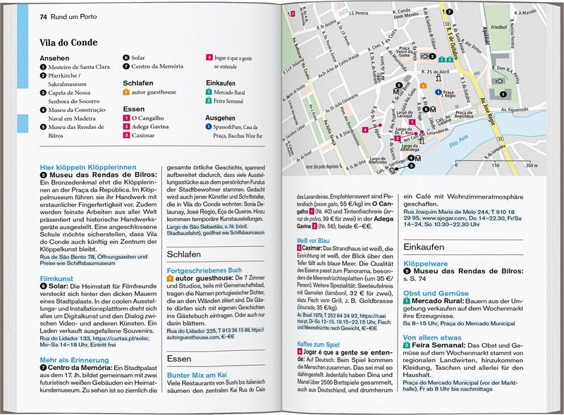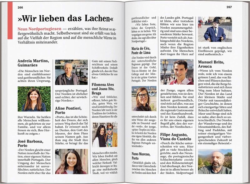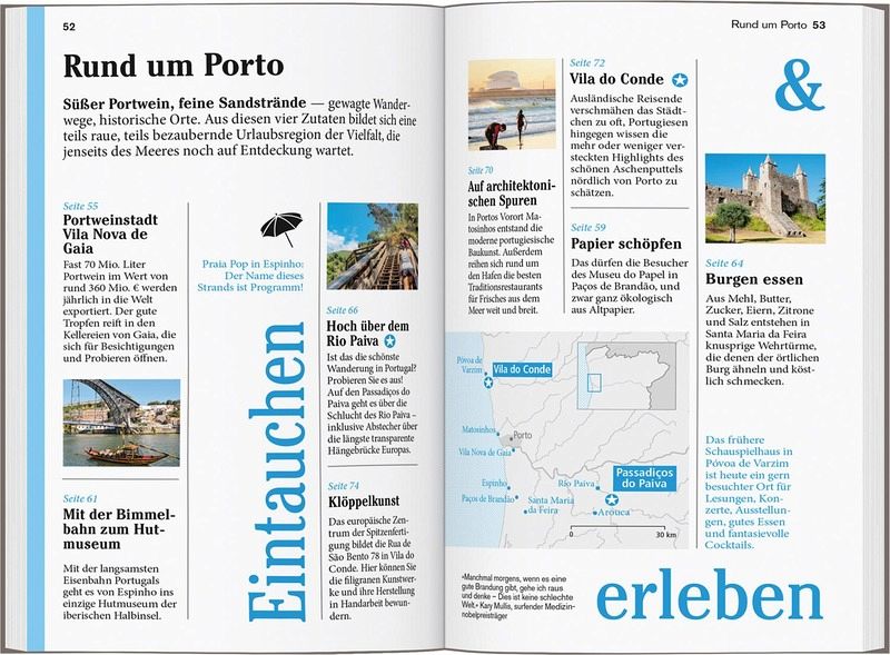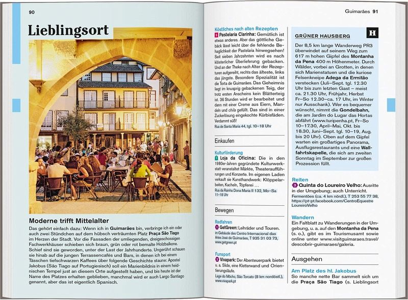 Persönlich und echt: Wir legen Wert auf ehrliche Erlebnisse, Nähe und Gegenwart Übersichtliche Gliederung in einzelne Regionen mit ihren Orten und Landschaften Lustvolle Eintauchen-und-erleben-Seiten vor jedem Kapitel Die Touren: Einfach losziehen, neue Wege gehen. Aktiv in Natur und Kultur eintauchen Die Lieblingsorte: gut für überraschende Entdeckungen Die Adressen: radikal subjektive Auswahl, mal stylish, mal ökologisch, immer individuell und persönlich Das Magazin: ein abwechslungsreiches Reisefeuilleton. Es packt auch kritische und kontroverse Themen an ... Die Karten: 10 Citypläne, 18 Tourenkarten, Übersichtskarte mit den Highlights Nordportugals, Schnellüberblick zu jeder Region plus eine große Reisekarte