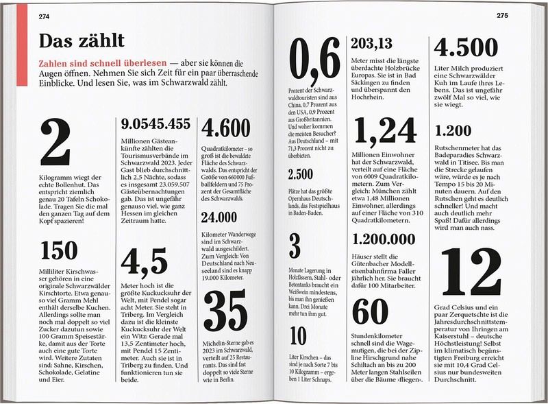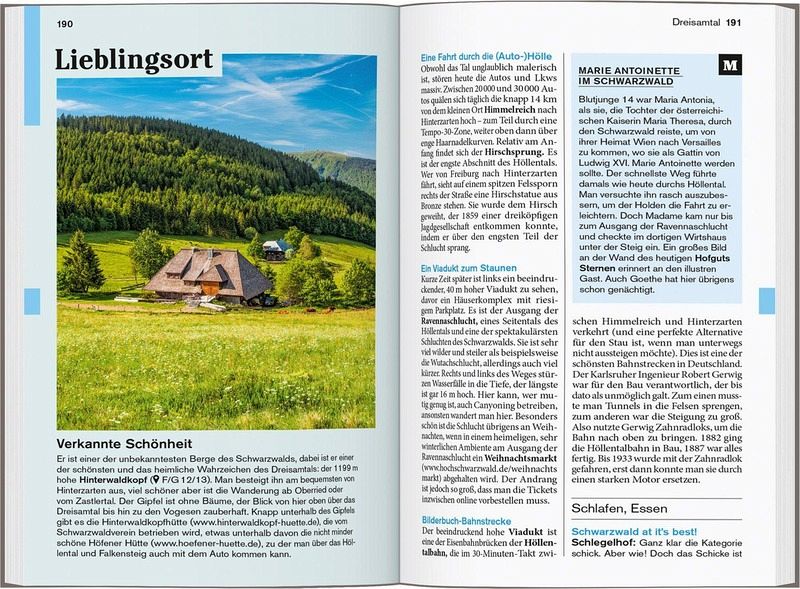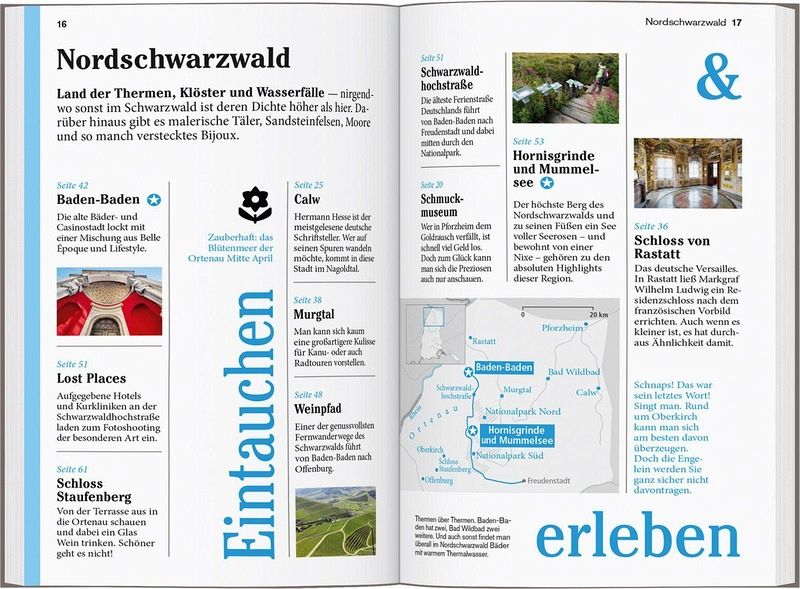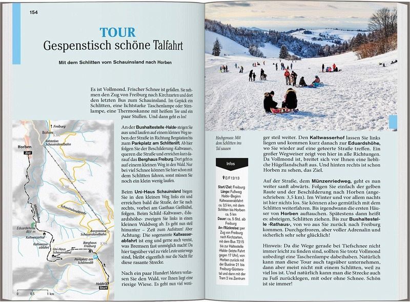 Persönlich und echt: Wir legen Wert auf ehrliche Erlebnisse, Nähe und Gegenwart Übersichtliche Gliederung in einzelne Regionen mit ihren Orten und Landschaften Lustvolle Eintauchen-und-erleben-Seiten vor jedem Kapitel Die Touren: Einfach losziehen, neue Wege gehen. Aktiv in Natur und Kultur eintauchen Die Lieblingsorte: gut für überraschende Entdeckungen Die Adressen: radikal subjektive Auswahl, mal stylish, mal ökologisch, immer individuell und persönlich Das Magazin: ein abwechslungsreiches Reisefeuilleton. Es packt auch kritische und kontroverse Themen an ... Die Karten: 5 Citypläne, 26 Tourenkarten, Übersichtskarte mit den Highlights des Schwarzwalds, Schnellüberblick zu jeder Region und zusätzlich eine große Reisekarte