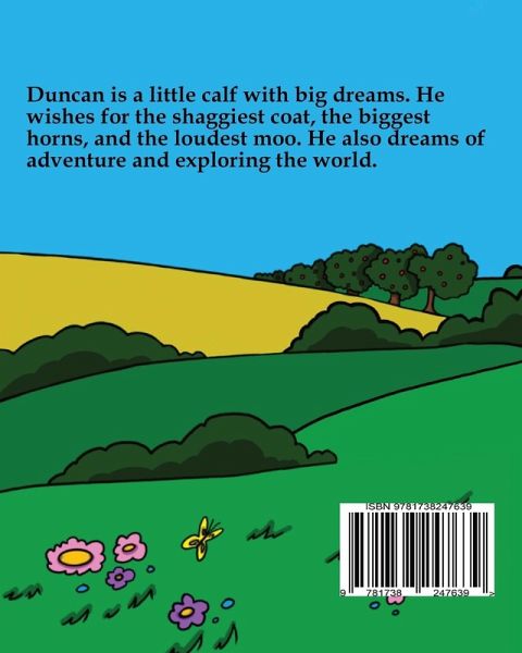 Duncan MacTavish is a Highland calf who has big dreams. He wants to have the shaggiest coat and the longest horns. He also wants to go on adventures and go exploring. His friends teach him patience and remind him that it is important to wait until the time is right.
