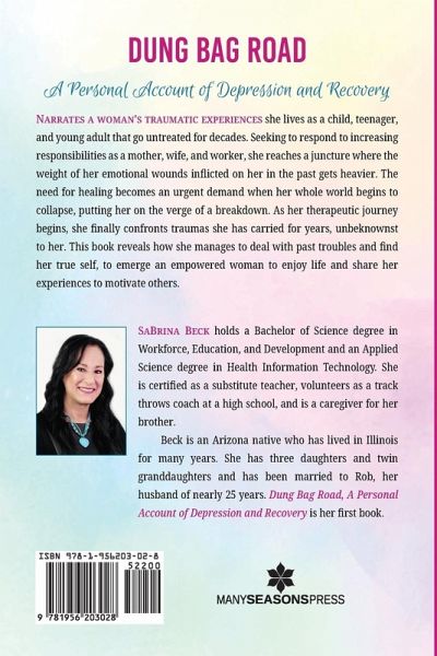 In their book, "What Happened to You?" Conversations on Trauma, Resilience, and Healing, Dr. Perry and Oprah Winfrey raised the question of 'What Happened to You?' instead of 'What is Wrong with You?' This allowed the author, SaBrina Beck to unblock her mind and open her heart to revisit the emotional drawings made while participating in a cognitive behavioral therapy program back in 2008. It would take 13 years to document her traumatic experiences that up until that time shaped her mental health and wellbeing. In Dung Bag Road, A Personal Account of Depression and Recovery Beck digs deep to answer that question for herself as she describes what happened to her beginning with her early memories at 8 years old visiting her mother in the hospital, as a teen being awakened by the shouting and fighting between her sister and mother, how she felt when her sister became pregnant as a teen, the time she took too many pills, the experiences of being a runaway, an absent and creepy father, a much too friendly neighbor, divorce with no kids, stuck in the Midwest after divorce with kids, to a remarriage with another attempt at divorce. It was an agonizing journey to put her emotional perspective into words sometimes experiencing the memories in a physically, gut-wrenching process, while managing them in a lighter, clearer headspace. The events in her life created experiences that remained unresolved would be a back seat driver that affected her mental health, her psyche, and her ability to live an unburdened healthy and happy life. She did the work in the Cognitive Behavioral Therapy program and follow-up counseling that would lead her back to her family and introduce her to life without the weight of self-prosecution, shame, and guilt. By travelling alongside her personal accounts, she hopes each chapter can open the door to discussions with your self-talk, your friends and family, and in groups and organizations that support and promote foundations for better mental health for women, men, and children, all in the hopes of normalizing therapy. She challenges you to bust the myth that if something is not documented, it did not happen. You are the documentation. You are the evidence. Your story is your foundation whether it is told immediately or when you are healed. The important thing is that we survive and are alive and well.