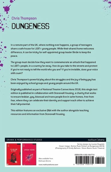 In a remote part of the UK, where nothing ever happens, a group of teenagers share a safe house for LGBT+ young people. While their shared home welcomes difference, it can be tricky for self-appointed group leader Birdie to keep the peace. The group must decide how they want to commemorate an attack that happened to people like them in a country far away. How do you take to the streets and protest if you're not ready to tell the world who you are? If you're invisible, does your voice still count? A play about love, commemoration and protest. Written fifty years on from the partial decriminalisation of homosexuality in England, this is a unique play for young people about the struggles and joys of being gay. Published alongside Stonewall Housing, a charity that works to ensure lesbian, gay, bisexual and trans people live in safer homes, free from fear, where they can celebrate their identity and support each other to achieve their full potential. This new edition features a new Q&A with the author alongside teaching resources and information from Stonewall Housing.