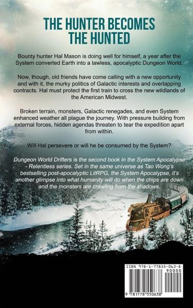 The hunter becomes the hunted Bounty hunter Hal Mason is doing well for himself, a year after the System converted Earth into a lawless, apocalyptic Dungeon World. Now, though, old friends have come calling with a new opportunity and with it, the murky politics of Galactic interests and overlapping contracts. Hal must protect the first train to cross the new wildlands of the American Midwest. Broken terrain, monsters, Galactic renegades, and even System enhanced weather all plague the journey. With pressure building from external forces, hidden agendas threaten to tear the expedition apart from within. Will Hal persevere or will he be consumed by the System? Dungeon World Drifters is the second book in the System Apocalypse - Relentless series. Set in the same universe as Tao Wong's bestselling post-apocalyptic LitRPG, the System Apocalypse, it's another glimpse into what humanity will do when the chips are down and the monsters are crawling from the shadows.