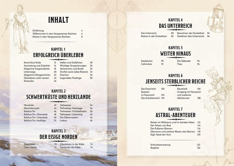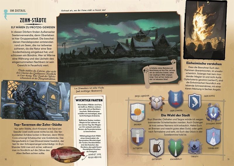 - Detaillierte Illustrationen der wichtigsten Orte und Kreaturen