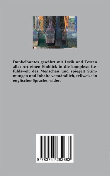 Dunkelbuntes gewährt mit Lyrik und Texten aller Art einen Einblick in die komplexe Gefühlswelt des Menschen und spiegelt Stimmungen und Inhalte verständlich, teilweise in englischer Sprache, wider. Einzelne Farbfotos der Autorin untermalen das Leseerlebnis.