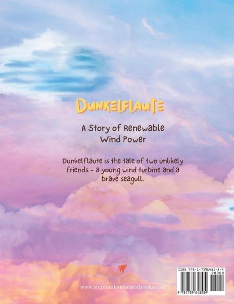 In Dunkelflaute, a renewable energy tale, young readers aged 4 to 7 embark on a whirlwind journey to learn about green electricity generation and renewable wind power. As they explore wind turbines and the magic of harnessing nature's breeze, a young wind turbine and seagull uncover the secrets behind sustainable energy in a captivating tale perfect for curious minds. Packed with vibrant illustrations and easy-to-understand explanations, this children's book introduces basic concepts of renewable energy in a fun and engaging way. Ideal for parents, teachers, and budding eco-enthusiasts, Dunkelflaute sparks curiosity and fosters a love for environmental stewardship. Picture books are an excellent way for children to make sense of our diverse world and the wonder of science. Dunkelflaute is a simple story that helps explain wind power and its importance while addressing the big, serious issue of energy sustainability in a fun, kid-friendly way. Synopsis: Dunkelflaute is a children's story about a brave young wind turbine making electricity for his neighborhood. But, unfortunately, when a Dunkelfaute strikes, his wind turbines cannot turn, leaving everyone without electricity. Until a brave seagull, who is watching, comes up with a solution, to ask the North Wind for help. Illustrated for a younger audience of ages 4 to 7 years, this lovely book gently introduces children to renewable wind energy. Copyright 2022 Stephanie O'Connor, all rights reserved. First published in 2022 by Madra Rua Publishing. Dunkelflaute is a German word meaning 'dark doldrums' or 'dark wind lull'. Dunkelflaute is a term used in the renewable energy sector to describe a time when little to no energy can be generated using wind and solar power.