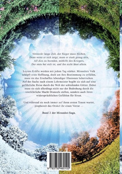 Versteckt lange Zeit, der Sieger muss bleiben,Denn wenn er sich zeigt, muss er stark genug sein,All dies zu beenden, mithilfe des Kriegers,Der stets bei sich ist, und ihn nicht lässt allein.Leynas Kräfte werden mit jedem Tag stärker. Mirandors Volk schöpft erste Hoffnung, doch um ihre Bestimmung zu erfüllen, muss sie das Erschaffen lebendiger Illusionen beherrschen. Auf der Suche nach einem Lehrmeister begibt sie sich auf eine gefährliche Reise durch die Welt der schlafenden Götter. Dabei muss sie sich allerdings nicht nur der Bedrohung durch die unerklärliche Macht Dranoels stellen, sondern auch ihren widersprüchlichen Gefühlen für Sivan.Und während sie noch immer auf ihren ersten Traum wartet, prophezeit das Orakel ihr einen Verrat ...Band 2 der Mirandor-Saga.