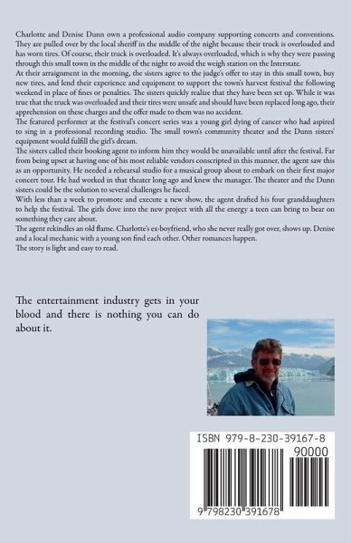 Charlotte and Denise Dunn own a professional audio company supporting concerts and conventions. They are pulled over by the local sheriff in the middle of the night because their truck is overloaded and has worn tires. Of course, their truck is overloaded. It's always overloaded, which is why they were passing through this small town in the middle of the night to avoid the weigh station on the Interstate. At their arraignment in the morning, the sisters agree to the judge's offer to stay in this small town, buy new tires, and lend their experience and equipment to support the town's harvest festival the following weekend in place of fines or penalties. The sisters quickly realize that they have been set up. While it was true that the truck was overloaded and their tires were unsafe and should have been replaced long ago, their apprehension on these charges and the offer made to them was no accident. The featured performer at the festival's concert series was a young girl dying of cancer who had aspired to sing in a professional recording studio. The small town's community theater and the Dunn sisters' equipment would fulfill the girl's dream. The sisters called their booking agent to inform him they would be unavailable until after the festival. Far from being upset at having one of his most reliable vendors conscripted in this manner, the agent saw this as an opportunity. He needed a rehearsal studio for a musical group about to embark on their first major concert tour. He had worked in that theater long ago and knew the manager. The theater and the Dunn sisters could be the solution to several challenges he faced. With less than a week to promote and execute a new show, the agent drafted his four granddaughters to help the festival. The girls dove into the new project with all the energy a teen can bring to bear on something they care about. The agent rekindles an old flame. Charlotte's ex-boyfriend, who she never really got over, shows up. Denise and a local mechanic with a young son find each other. Other romances happen. The story is light and easy to read.