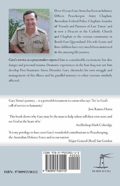 'Duntroon to Dili' is a compelling story of a man who has committed his life to the service of others. Gary graduated from the Royal Military College Duntroon and his service as a peacemaker has exposed him to considerable danger and personal trauma. Dramatic experiences in the Iran-Iraq war saw him develop Post-Traumatic Stress Disorder. Gary chronicles his own struggle and management of this illness, and his parallel ministry to other veterans similarly affected. Despite being a distinguished graduate of senior military staff colleges and with a wealth of experience as an Infantry Officer, Gary gave up his promising military career to train and be ordained as a Deacon in the Catholic Church. I¿n his new vocation, Gary served as Chaplain in both the Australian Army and Federal Police, with multiple deployments to Timor-Leste, The Solomon Islands, Bougainville and the Asian Tsunami of 2004. He also continued to be an active leader in a wide range of communities that he has been a part of, as well as an outspoken advocate for peace, justice and morality. Gary Stone's journey will take you through a life of adventure around the world. It is a powerful testament of a man who says 'Yes' to God's call of service to humanity; a story of a man who does not back away from a challenge regardless of the risk or magnitude.