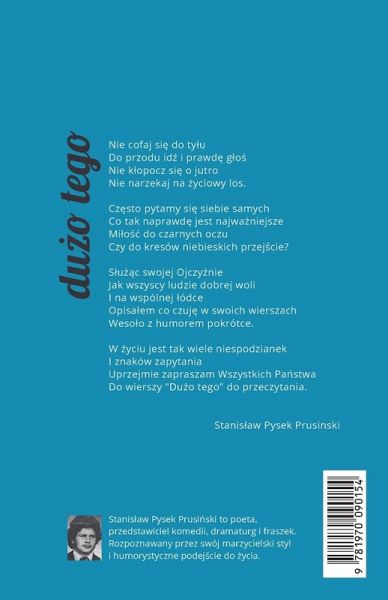 Obecny zbiór wierszy Stanis¿awa Pyska Prusi¿skiego zawiera wiele tytu¿ów o ró¿nej tematyce. Nie da si¿ nie zauwäy¿ tematów daj¿cych wiele do przemy¿lenia. Moc absurdów sytuacji bardzo ¿miesznych wzi¿tych z ¿ycia codziennego. Czwarty tom: Du¿o tego.