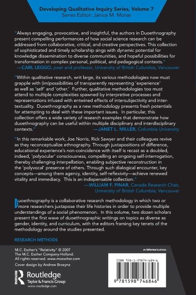 Duoethnography is a collaborative research methodology in which two or more researchers juxtapose their life histories in order to provide multiple understandings of a social phenomenon. Using their own biographies as sites of research and creating dialogic narratives, they provide multiple perspectives of this phenomenon for the reader, inviting the viewer to enter the conversation. The dialectic process of creating duoethnography is also designed to be transformative to the writers. In this volume, two dozen scholars present the first wave of duoethnographic writings on topics as diverse as gender, identity, and curriculum, with the editors framing key tenets of the methodology around the studies presented. This participatory, emancipatory methodology is of interest to those doing qualitative research and narrative writing in many disciplines.