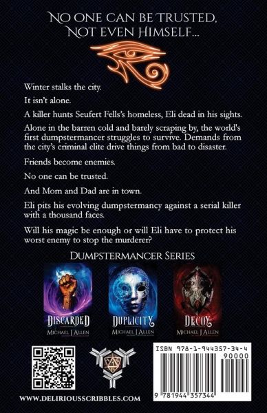 ¿Two weeks of freedom hasn’t been enough for Eli to rebuild his life. While he races to prepare for looming winter, a killer’s crusade to exterminate Seufert Fells’s homeless drives a knife into the city’s criminal elite. Forced to hunt a killer disguised by magic, Eli’s world becomes a house of mirrors. Friends become enemies. Deceptions abound, and the magic that saved Eli threatens to consume him. ¿With the serial killer targeting everything ¿he ¿loves, even new dumpstermancer ¿ spells might not be enough. Eli may have to protect his worst enemy to defeat a killing machine with a thousand faces