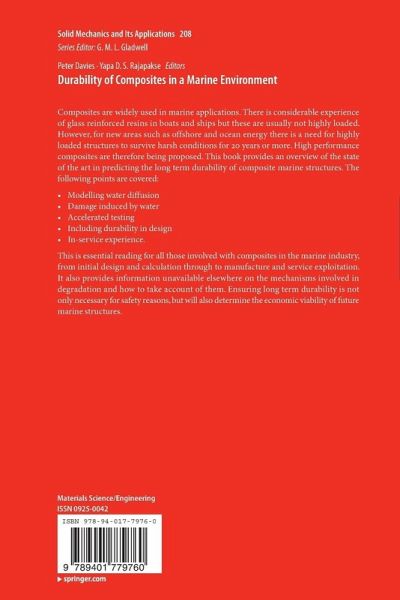This is essential reading for all those involved with composites in the marine industry, from initial design and calculation through to manufacture and service exploitation. It also provides information unavailable elsewhere on the mechanisms involved in degradation and how to take account of them. Ensuring long term durability is not only necessary for safety reasons, but will also determine the economic viability of future marine structures.