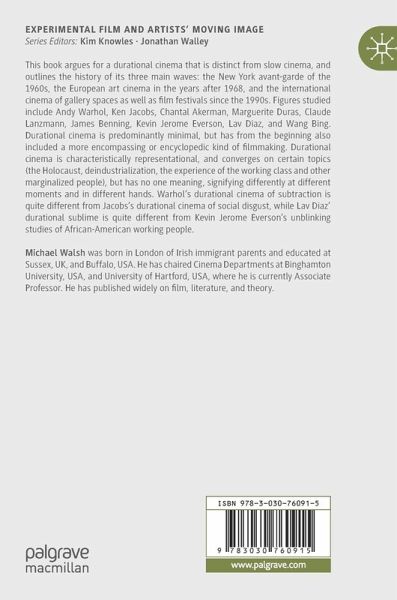 This book argues for a durational cinema that is distinct from slow cinema, and outlines the history of its three main waves: the New York avant-garde of the 1960s, the European art cinema in the years after 1968, and the international cinema of gallery spaces as well as film festivals since the 1990s. Figures studied include Andy Warhol, Ken Jacobs, Chantal Akerman, Marguerite Duras, Claude Lanzmann, James Benning, Kevin Jerome Everson, Lav Diaz, and Wang Bing.Durational cinema is predominantly minimal, but has from the beginning also included a more encompassing or encyclopedic kind of filmmaking. Durational cinema is characteristically representational, and converges on certain topics (the Holocaust, deindustrialization, the experience of the working class and other marginalized people), but has no one meaning, signifying differently at different moments and in different hands. Warhol's durational cinema of subtraction is quite different from Jacobs's durational cinema of socialdisgust, while Lav Diaz' durational sublime is quite different from Kevin Jerome Everson's unblinking studies of African-American working people.