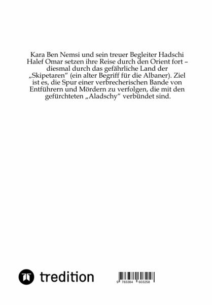 Kara Ben Nemsi und sein treuer Begleiter Hadschi Halef Omar setzen ihre Reise durch den Orient fort - diesmal durch das gefährliche Land der "Skipetaren" (ein alter Begriff für die Albaner). Ziel ist es, die Spur einer verbrecherischen Bande von Entführern und Mördern zu verfolgen, die mit den gefürchteten "Aladschy" verbündet sind.