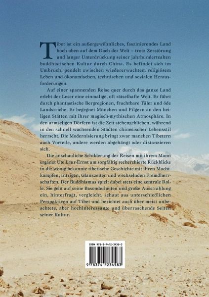 Tibet ist ein außergewöhnliches, faszinierendes Land hoch oben auf dem Dach der Welt - trotz Zerstörung und langer Unterdrückung seiner jahrhundertealten buddhistischen Kultur durch China. Es befindet sich im Umbruch, pendelt zwischen wiedererwachtem religiösem Leben und ökonomischen, technischen und sozialen Herausforderungen. Auf einer spannenden Reise quer durch das ganze Land erlebt der Leser eine einmalige, oft rätselhafte Welt. Er fährt durch phantastische Bergregionen, fruchtbare Täler und öde Landstriche. Er begegnet Mönchen und Pilgern an den heiligen Stätten mit ihrer magisch-mythischen Atmosphäre. In den armseligen Dörfern ist die Zeit stehengeblieben, während in den schnell wachsenden Städten chinesischer Lebensstil herrscht. Die Modernisierung bringt zwar manchen Tibetern auch Vorteile, andere werden abgehängt oder distanzieren sich. Die anschauliche Schilderung der Reisen mit ihrem Mann ergänzt Ute Laur-Ernst um sorgfältig recherchierte Rückblicke in die wenig bekannte tibetische Geschichte mit ihren Machtkämpfen, Intrigen, Glanzzeiten und wechselnden Fremdherrschaften. Der Buddhismus spielt dabei stets eine zentrale Rolle. Sie geht auf seine Besonderheiten und große Ausstrahlung ein, hinterfragt, vergleicht, schaut aus unterschiedlichen Perspektiven auf Tibet und berichtet auch über meist unbeachtete, aber hochinteressante und überraschende Seiten seiner Kultur.