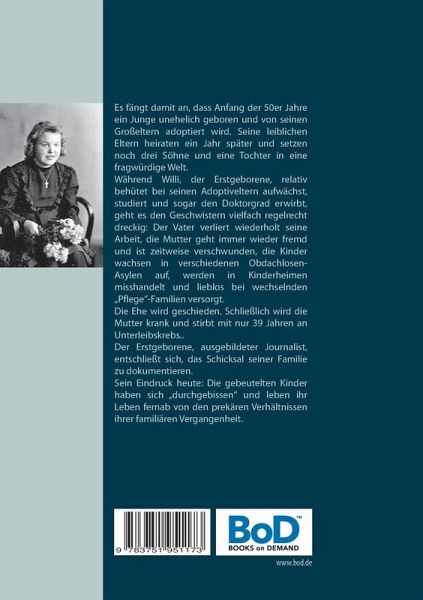 Unhygienische Zustände in mehr als einem Obdachlosenasyl, Prügelattacken in diversen Kinderheimen, Vater immer wieder arbeitslos, wechselnde Liebhaber der Mutter, rücksichtslose Pflegefamilien, schmutzige Scheidung, früher Tod der Mutter, Kinder abermals ins Heim. Dass meine vier Geschwister bei all dem, was sie durchmachen mussten, keine Psychopathen, Verbrecher oder Asozialen geworden sind, kann nur einen Grund haben: Sie mussten sich stets irgendwie durchbeißen und haben das auch getan ... bis heute.
