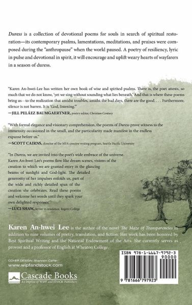 Duress is a collection of devotional poems for souls in search of spiritual restoration--its contemporary psalms, lamentations, meditations, and praises were composed during the "anthropause" when the world paused. A poetry of resiliency, lyric in pulse and contemplative in spirit, it will encourage and uplift weary hearts of wayfarers in a season of duress.