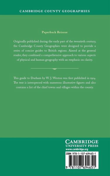 Originally published during the early part of the twentieth century, the Cambridge County Geographies were designed to provide a series of concise guides to British regions. Aimed at the general reader, they combined a comprehensive approach to various aspects of physical and human geography with an emphasis on clarity. This guide to Durham by W. J. Weston was first published in 1914. The text is interspersed with numerous illustrative figures and also contains a list of the chief towns and villages within the county.