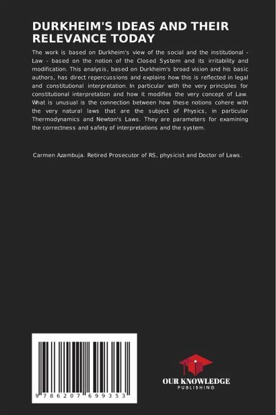The work is based on Durkheim's view of the social and the institutional - Law - based on the notion of the Closed System and its irritability and modification. This analysis, based on Durkheim's broad vision and his basic authors, has direct repercussions and explains how this is reflected in legal and constitutional interpretation. In particular with the very principles for constitutional interpretation and how it modifies the very concept of Law. What is unusual is the connection between how these notions cohere with the very natural laws that are the subject of Physics, in particular Thermodynamics and Newton's Laws. They are parameters for examining the correctness and safety of interpretations and the system.
