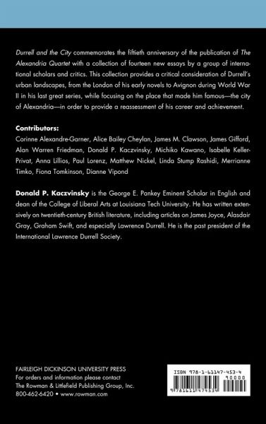 Acknowledgments List of Abbreviations Introduction-Donald P. Kaczvinsky The Country and the CityChapter 1: "Rural Reception in Panic Spring and The Dark Labyrinth" -James M. Clawson Chapter 2: "Real and Unreal Cities: The Modernist Origins of Durrell's Alexandria" -James Gifford Durrell's Alexandria: Reconstructing the City of the SomaChapter 3: "'The City Begins and Ends in Us': Durrell's City as Interior Space" -Linda Stump-Rashidi Chapter 4: "Alexandria: The City as Nexus" -Anna Lillios Chapter 5: "Strangers in a Strange Land" -Alice Bailey Cheylan Chapter 6: "Writing (on) Walls or the Palimpsest of Time in Lawrence Durrell's Alexandria Quartet" -Corinne Alexandre-Garner and Isabelle Keller-Privat Chapter 7: Durrell's Alexandria Quartet: A Culinary Perspective -Merrianne Timko Cities, Places, and PeopleChapter 8: "From the Interior City: The White Negro Thinking in Pidgin" -Paul Lorenz Chapter 9: "Roses, Faeces and Vampires: The Carnivalesque in Durrell" -Fiona Tomkinson Chapter 10: "Reading the Ethics of Durrell's Avignon Quintet" -Dianne Vipond Durrell and the American Literary LandscapeChapter 11: "'An Attention That Is Almost Holy': The Spirit of Provence in Durrell and Hemingway" -Matthew Nickel Chapter 12: "Reverie of Utopia and Actuality in the City: The Cases of Justine and Blanche DuBois" -Michiko Kawano Chapter 13: "'Where the Blue Algonquin Flows': Durrell, New York and the American 'Spirit of Place'" -Donald P. Kaczvinsky Chapter 14: "Durrell's Alexandria Quartet: 50 Years Later" -Alan Warren Friedman Bibliography About the Contributors