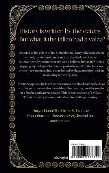 History is written by the victors. But what if the fallen had a voice? Branded as the villain of the Mahabharata, Duryodhana has been cursed, condemned, and cast into the shadows of time. But was he truly the monster the world believes him to be? In this gripping mythological fiction, step into the mind of the Kaurava prince-a warrior, a king, and a man bound by duty, ambition, and an unyielding sense of justice. From the opulent halls of Hastinapura to the bloodstained fields of Kurukshetra, witness his friendships, his rivalries, and the weight of a fate he could never escape. This is not the story of a villain. This is the story of a man who dared to challenge destiny. "Duryodhana: The Other Side of the Mahabharata"-because every legend has another side.