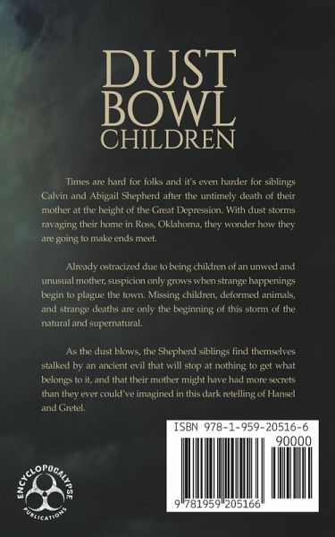 Times are hard for folks and it's even harder for siblings Calvin and Abigail Shepherd after the untimely death of their mother at the height of the Great Depression. With dust storms ravaging their home in Ross, Oklahoma, they wonder how they are going to make ends meet. Already ostracized due to being children of an unwed and unusual mother, suspicion only grows when strange happenings begin to plague the town. Missing children, deformed animals, and strange deaths are only the beginning of this storm of the natural and supernatural. As the dust blows, the Shepherd siblings find themselves stalked by an ancient evil that will stop at nothing to get what belongs to it, and that their mother might have had more secrets than they ever could've imagined in this dark retelling of Hansel and Gretel.