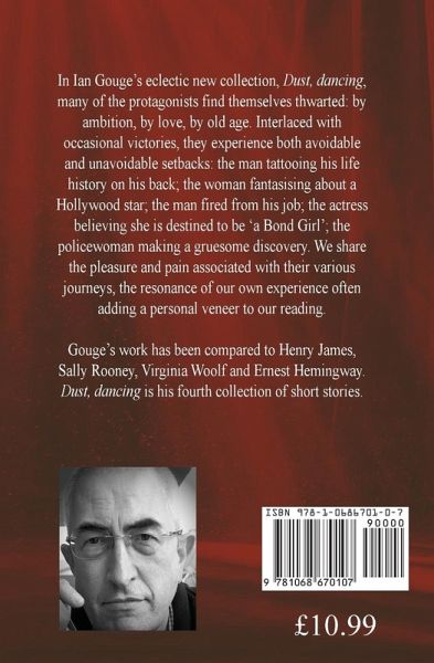 In Ian Gouge's eclectic new collection, Dust, dancing, many of the protagonists find themselves thwarted: by ambition, by love, by old age. Interlaced with occasional victories, they experience both avoidable and unavoidable setbacks: the man tattooing his life history on his back; the woman fantasising about a Hollywood star; the man fired from his job; the actress believing she is destined to be 'a Bond Girl'; the policewoman making a gruesome discovery. We share the pleasure and pain associated with their various journeys, the resonance of our own experience often adding a personal veneer to our reading. Gouge's work has been compared to Henry James, Sally Rooney, Virginia Woolf and Ernest Hemingway. Dust, dancing is his fourth collection of short stories.