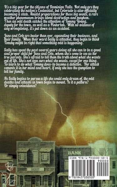 It's a big year for the citizens of Dominion Falls. Not only are they celebrating the nation's Centennial, but Colorado is also officially becoming a state. Amidst preparations for these big events, a rare weather phenomenon brings about destruction and mayhem. Then an odd death catches the attention of Tommy Young, deputy for the town, as well as a Pinkerton. With no evidence of any wrongdoing, it's put down as an accident. Jane and Cole are busier than ever, expanding their business, and their family. When their ward Sally is attacked, they begin to think Tommy might be right that something odd is happening. Sally has spent the past several years doing all she can to be a good and proper child for Jane and Cole, whom she's come to see as her true parents. She's afraid to tell them the truth about what she wants out of life. She's not even sure what she wants, except for one thing. To learn to do what Tommy does-to become a detective. Her attack cements it in her mind and heart, if only she has the gumption to tell her family. As Sally begins to pursue a life she could only dream of, the odd deaths and attacks in town begin to mount. Is it a pattern? Or simply coincidence?