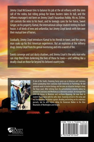 Jimmy Lloyd McGowan tries to balance his job at the oil refinery with the siren call of the rodeo, but riding pickup for bronc busters takes its toll, and the refinery manager's not keen on Jimmy Lloyd's hazardous hobby. His ex, Esther, still controls the reins to his heart, and he lovingly cares for her horse, Sweet Ginger, on his property. Kamal, the international college student renting his back house, is all kinds of new and unfamiliar, but Jimmy Lloyd bonds with him over their mutual love of horses. Gradually, Jimmy Lloyd introduces Kamal to his friends in town, and the young man soaks up his first American experiences. But an explosion at the refinery drags Jimmy Lloyd from his genial mentoring and into a world of fire. Events converge and cast dusty shadows, and Jimmy Lloyd is the only man who can stop them from darkening the lives of those he loves-and settling like a deadly cloud on those far beyond his beloved countryside.