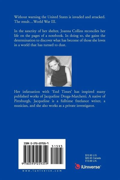 Without warning the United States is invaded and attacked. The result ... World War III. In the sanctity of her shelter, Joanna Collins reconciles her life on the pages of a notebook. In doing so, she gains the determination to discover what has become of those she loves in a world that has turned to dust.