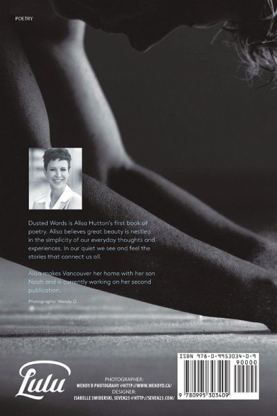 Dusted Words is Alisa Hutton's first book of poetry. Alisa believes great beauty is nestled in the simplicity of our everyday thoughts and experiences. In our quiet, we see and feel the stories that connect us all. Alisa makes Vancouver her home with her son Noah and is currently working on her second publication.
