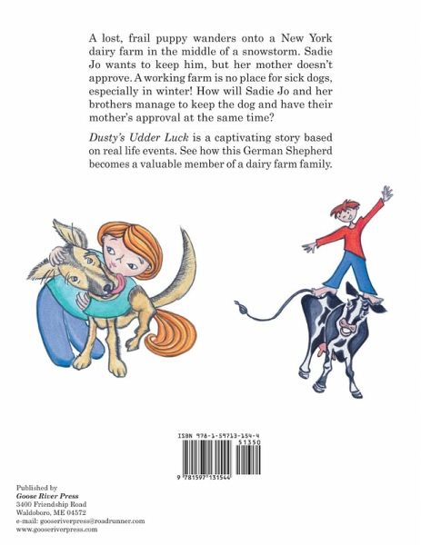 A lost, frail puppy wanders onto a New York dairy farm in the middle of a snowstorm. Sadie Jo wants to keep him, but her mother doesn't approve. A Working farm is no place for sick dogs, especially in winter! How will Sadie Jo and her brothers manage to keep the dog and have their mother's approval at the same time? Dusty's Udder Luck is a captivating story based on real life events. See how this German Shepherd becomes a valuable member of a dairy farm family.