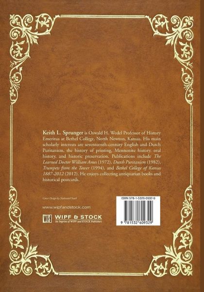 Keith L. Sprunger is Oswald H. Wedel Professor of History Emeritus at Bethel College, North Newton, Kansas. His main scholarly interests are seventeenth-century English and Dutch Puritanism, the history of printing, Mennonite history, oral history, and historic preservation. Publications include The Learned Doctor William Ames (1972), Dutch Puritanism (1982), Trumpets from the Tower (1994), and Bethel College of Kansas 1887-2012 (2012). He enjoys collecting antiquarian books and historical postcards.