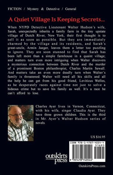 A Quiet Village Is Keeping Secrets... When NYPD Detective Lieutenant Walter Hudson's wife, Sarah, unexpectedly inherits a family farm in the tiny upstate village of Dutch River, New York, their first thought is to sell it as soon as possible. But they are immediately charmed by the village and its residents, and Sarah's great-uncle, Armin Jaeger, leaves them a letter too puzzling to ignore. They are soon stunned to find that Sarah has been left more than a simple farmhouse in a quaint village; and matters turn even more intriguing when Walter discovers a mysterious connection between Dutch River and the murder of a prominent Boston philanthropist, Charles Martin Sewall. And matters take an even more deadly turn when Walter's family is threatened. Walter will need all his skills and all the help he can get from his good friend, Leviticus Welles, as he desperately races against time not just to solve a hideous crime but to save his family as well. It's a race he can't afford to lose.