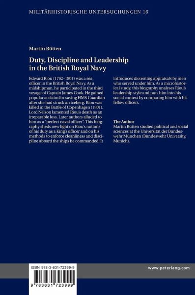 This biography sheds new light on Riou's notions of his duty as a King's officer and on his methods to enforce cleanliness and discipline aboard the ships he commanded. It introduces dissenting appraisals by men who served under him. As a microhistorical study, this biography analyses Riou's leadership style and puts him into his social context by comparing him with his fellow officers.