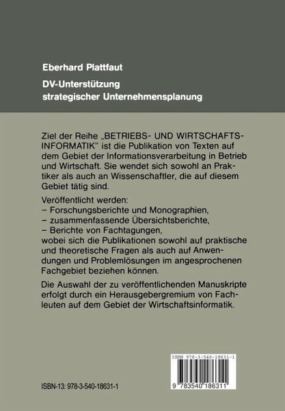 Die DV-Unterstützung strategischer Unternehmensplanung wurde bisher in Veröffentlichungen sowohl zur strategischen Unternehmensplanung als auch zur Datenverarbeitung weitgehend vernachlässigt. Es werden drei Verbindungslinien zwischen Datenverarbeitung bzw. Informationstechnik (IT) und strategischer Planung aufgezeigt: DV-Unterstützung strategischer Entscheidungen, der Einsatz der IT als strategische "Waffe" und die strategische Planung der DV selbst. Der Schwerpunkt der Arbeit liegt im Aufzeigen der Möglichkeiten, strategische Unternehmensplanung durch IT zu unterstützen. Anhand von in…mehr