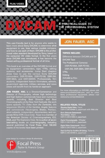 "In his previous book, Shooting Digital Video, Jon Fauer, ASC provided an exemplary overview of digital video, covering DVCam, MiniDV and DVCPro. His new book, DVCAM, is a comprehensive summary of the Sony DVCam format and its equipment, including cameras, tape, VTRs, editors and accessories." - Ray Zone, American Cinematographer