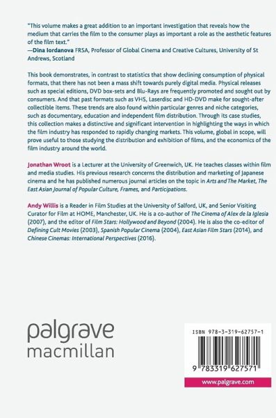 This book demonstrates, in contrast to statistics that show declining consumption of physical formats, that there has not been a mass shift towards purely digital media. Physical releases such as special editions, DVD box-sets and Blu-Rays are frequently promoted and sought out by consumers. And that past formats such as VHS, Laserdisc and HD-DVD make for sought-after collectible items. These trends are also found within particular genres and niche categories, such as documentary, education and independent film distribution. Through its case studies, this collection makes a distinctive and significant intervention in highlighting the ways in which the film industry has responded to rapidly changing markets. This volume, global in scope, will prove useful to those studying the distribution and exhibition of films, and the economics of the film industry around the world.