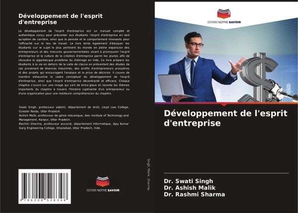 Le développement de l'esprit d'entreprise est un manuel complet et authentique conçu pour présenter aux étudiants l'esprit d'entreprise en tant qu'option de carrière, ainsi que la pensée et le comportement innovants pour l'efficacité sur le lieu de travail. Le livre tente également d'éduquer les étudiants sur le sujet le plus pertinent du monde en pleine expansion des entrepreneurs et des mesures gouvernementales visant à promouvoir l'esprit d'entreprise et la culture de la création d'entreprise parmi les jeunes afin de résoudre le gigantesque problème du chômage en Inde. Ce livre prépare les étudiants à la vie en dehors de la salle de classe en présentant des études de cas provenant de diverses industries, des profils d'entrepreneurs prospères et des projets qui encouragent l'analyse et la prise de décision. Il couvre de manière exhaustive le cadre conceptuel du développement de l'esprit d'entreprise, ainsi que l'esprit d'entreprise décontracté et efficace. Chaque chapitre s'ouvre sur une image qui sert de brise-glace et raconte les thèmes importants du chapitre à travers l'histoire captivante d'un entrepreneur ou d'une organisation pour une meilleure compréhension du chapitre.
