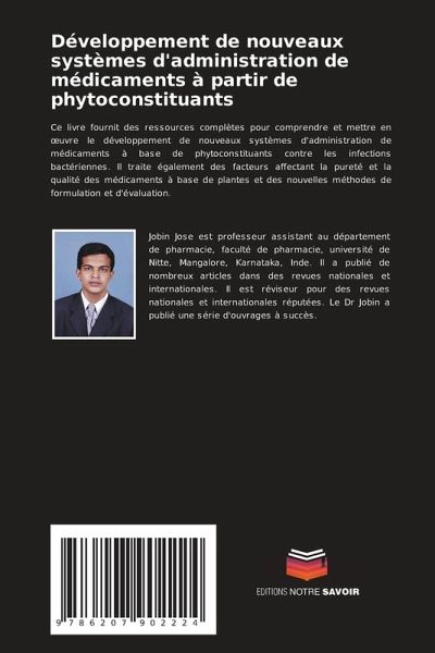 Ce livre fournit des ressources complètes pour comprendre et mettre en oeuvre le développement de nouveaux systèmes d'administration de médicaments à base de phytoconstituants contre les infections bactériennes. Il traite également des facteurs affectant la pureté et la qualité des médicaments à base de plantes et des nouvelles méthodes de formulation et d'évaluation.