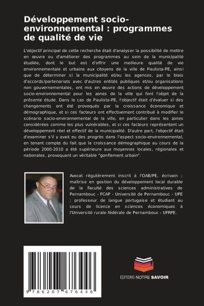 L'objectif principal de cette recherche était d'analyser la possibilité de mettre en oeuvre ou d'améliorer des programmes au sein de la municipalité étudiée, dont le but est d'offrir une meilleure qualité de vie environnementale et urbaine aux citoyens de la ville de Paulista-PE, ainsi que de déterminer si la municipalité et/ou les agences, par le biais d'accords/partenariats avec d'autres entités publiques et/ou organisations non gouvernementales, ont mis en oeuvre des actions de développement socio-environnemental pour les zones de la ville qui font l'objet de la présente étude. Dans le cas de Paulista-PE, l'objectif était d'évaluer si des changements ont été provoqués par la croissance économique et démographique, et si ces facteurs ont effectivement contribué à modifier le scénario socio-environnemental de la ville, en particulier dans les zones considérées comme les plus vulnérables, et si ces facteurs représentent un développement réel et effectif de la municipalité. D'autre part, l'objectif était d'examiner s'il y avait eu des progrès dans l'aspect socio-environnemental, en tenant compte du fait que la croissance démographique au cours de la période 2000-2010 a été supérieure aux moyennes locales, régionales et nationales, provoquant un véritable "gonflement urbain".