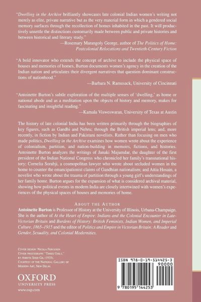 Dwelling in the Archives uses the writing of three 20th century Indian women to interrogate the status of the traditional archive, reading their memoirs, fictions, and histories as counter-narratives of colonial modernity. Janaki Majumdar was the daughter of the first president of the Indian National Congress. Her unpublished "Family History" (1935) stages the story of her parents' transnational marriage as a series of homes the family inhabited in Britain and India -- thereby providing a heretofore unavailable narrative of the domestic face of 19th century Indian nationalism. Cornelia Sorabji was one of the first Indian women to qualify for the bar. Her memoirs (1934 and 1936) demonstrate her determination to rescue the zenana (women's quarters) and purdahashin (secluded women) from the recesses of the orthodox home in order to counter the emancipationist claims of Gandhian nationalism. Last but not least, Attia Hosain's 1961 novel, "Sunlight on Broken Column" represents the violence and trauma of partition through the biography of a young heroine called Laila and her family home. Taken together, their writings raise questions about what counts as an archive, offering us new insights into the relationship of women to memory and history, gender to fact and fiction, and feminism to nationalism and postcolonialism.