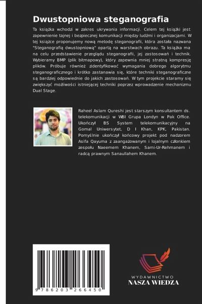 Ta ksi¿¿ka wchodzi w zakres ukrywania informacji. Celem tej ksi¿¿ki jest zapewnienie tajnej i bezpiecznej komunikacji mi¿dzy lud¿mi i organizacjami. W tej ksi¿¿ce proponujemy now¿ metod¿ steganografii, która zostäa nazwana "Steganografi¿ dwustopniow¿" opart¿ na warstwach obrazu. Ta ksi¿¿ka ma na celu przedstawienie przegl¿du steganografii, jej zastosowä i technik. Wybieramy BMP (plik bitmapowy), który zapewnia mniej stratn¿ kompresj¿ plików. Próbuje równie¿ zidentyfikowä wymagania dobrego algorytmu steganograficznego i krótko zastanawia si¿, które techniki steganograficzne s¿ bardziej odpowiednie do jakich zastosowä. W tym projekcie staramy si¿ zwi¿kszy¿ mo¿liwo¿ci istniej¿cej techniki poprzez wprowadzenie mechanizmu Dual Stage.