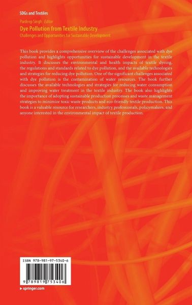 This book provides a comprehensive overview of the challenges associated with dye pollution and highlights opportunities for sustainable development in the textile industry. It discusses the environmental and health impacts of textile dyeing, the regulations and standards related to dye pollution, and the available technologies and strategies for reducing dye pollution. One of the significant challenges associated with dye pollution is the contamination of water resources. The book further discusses the available technologies and strategies for reducing water consumption and improving water…mehr